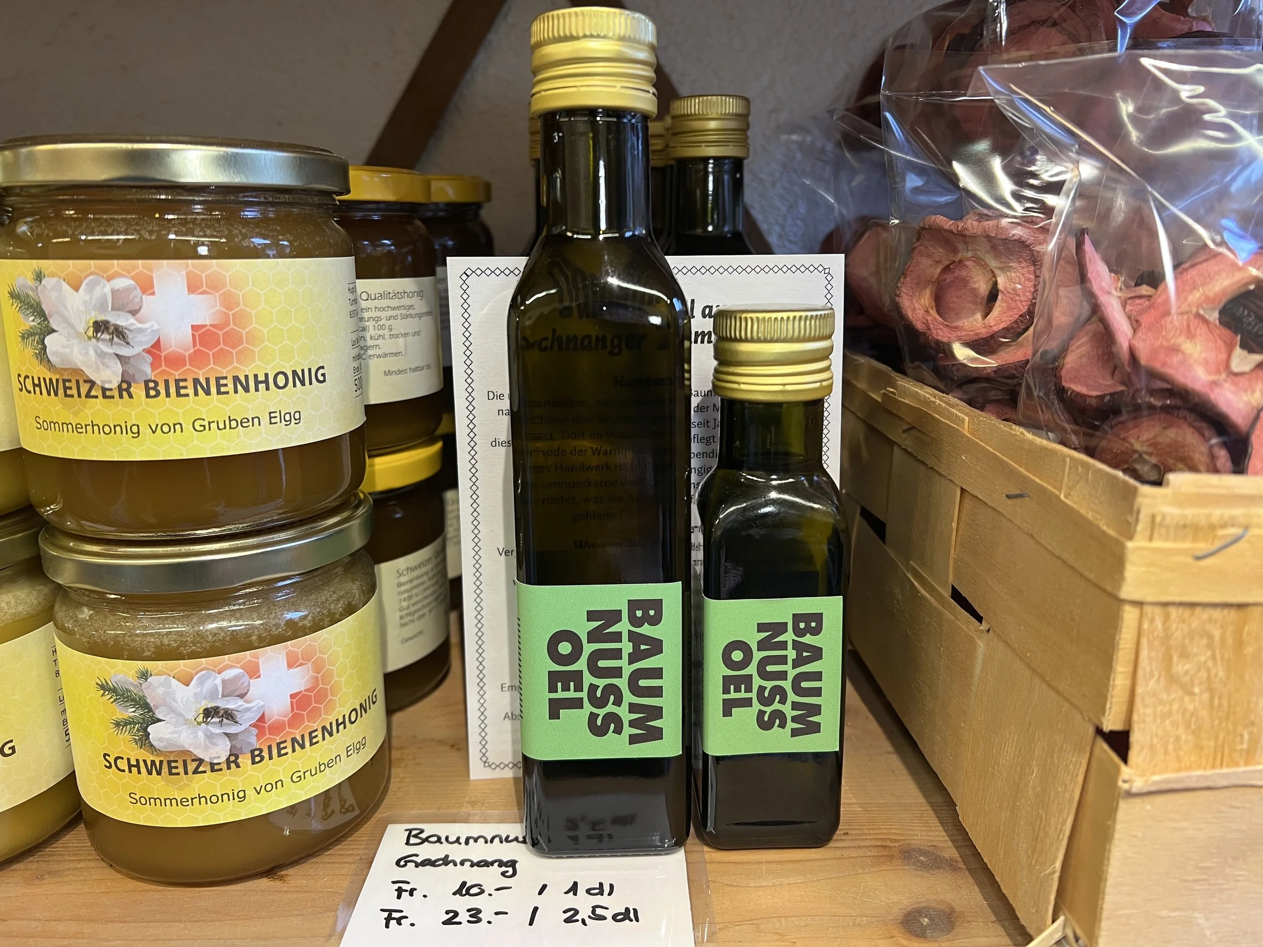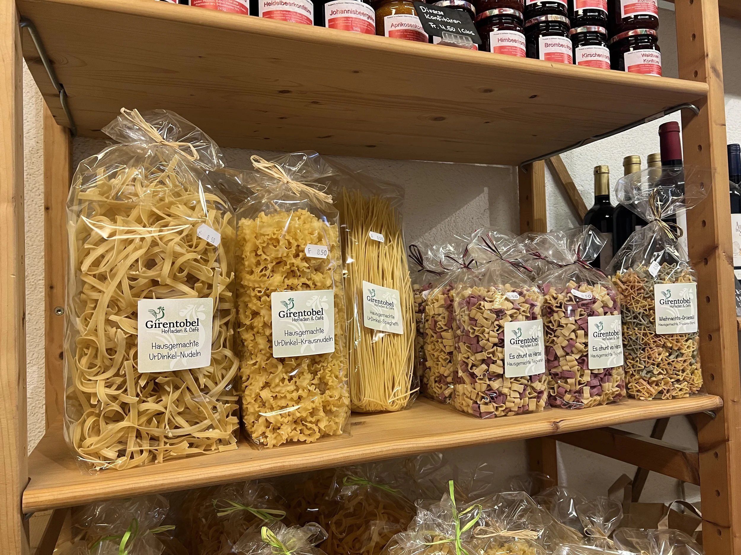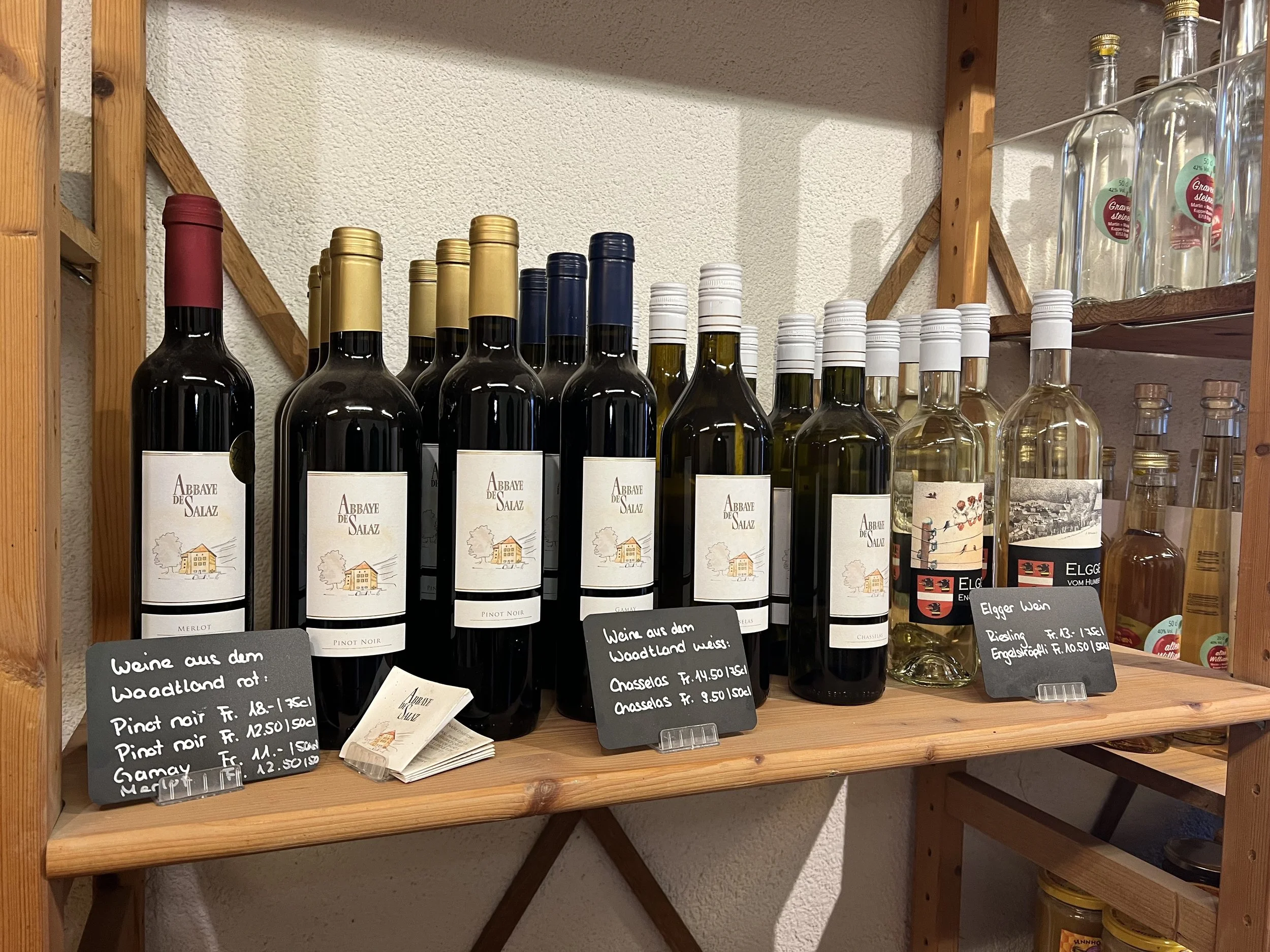 Das Sortiment wird ergänzt mit zugekauften Produkten wie Eier, Wein, Honig, Teigwaren, Gebäck, Bauernhofglacés, Bergkäse, Brennholz etc. Mit Ausnahme des Waadtläder Weins und des Bergkäses stammt alles aus der Region. Im Herbst erfreut unsere grosse Auswahl an Speise- und Zierkürbissen Auge und Gaumen und vor Weihnachten stehen bei uns Christbäume für Sie bereit.